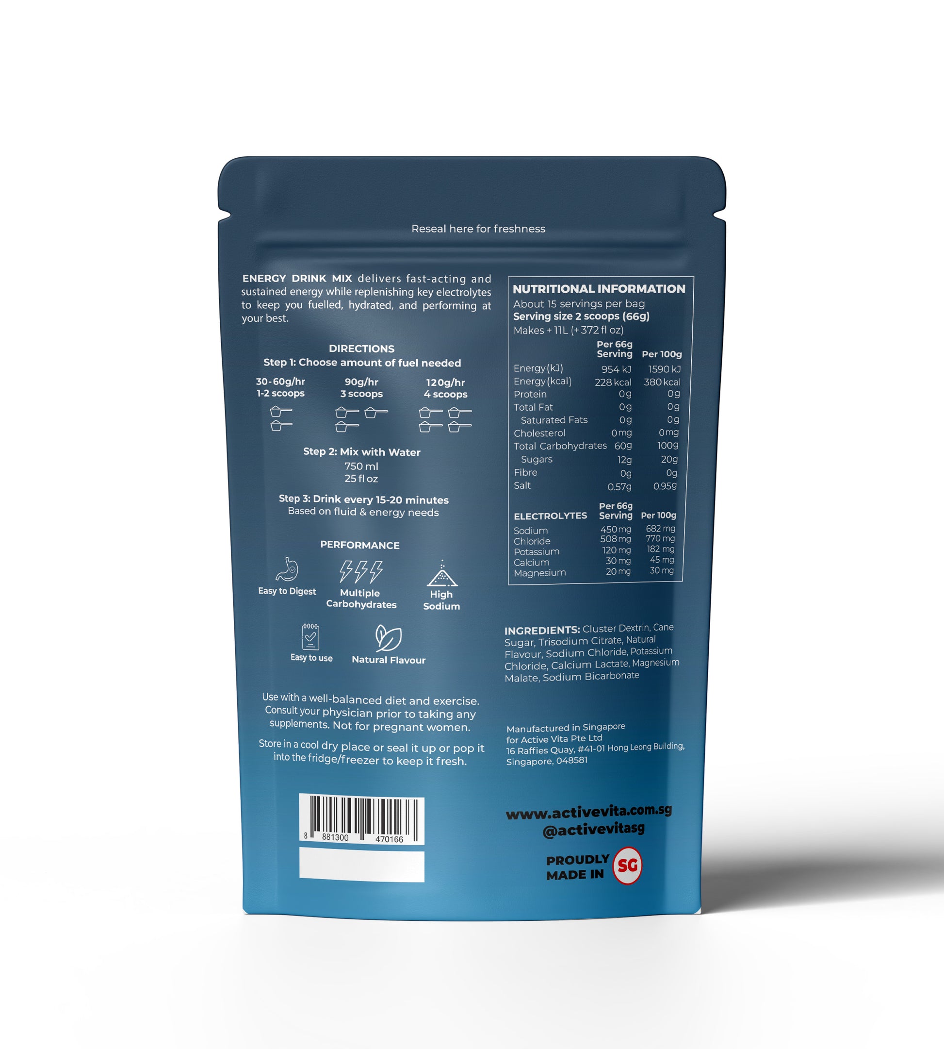 Cluster Dextrin, Can Sugar, Trisodium Citrate, Natural Flavour, Sodium Chloride, Potassium Chloride, Calcium Lactate, Magnesium Malate, Sodium Bicarbonate